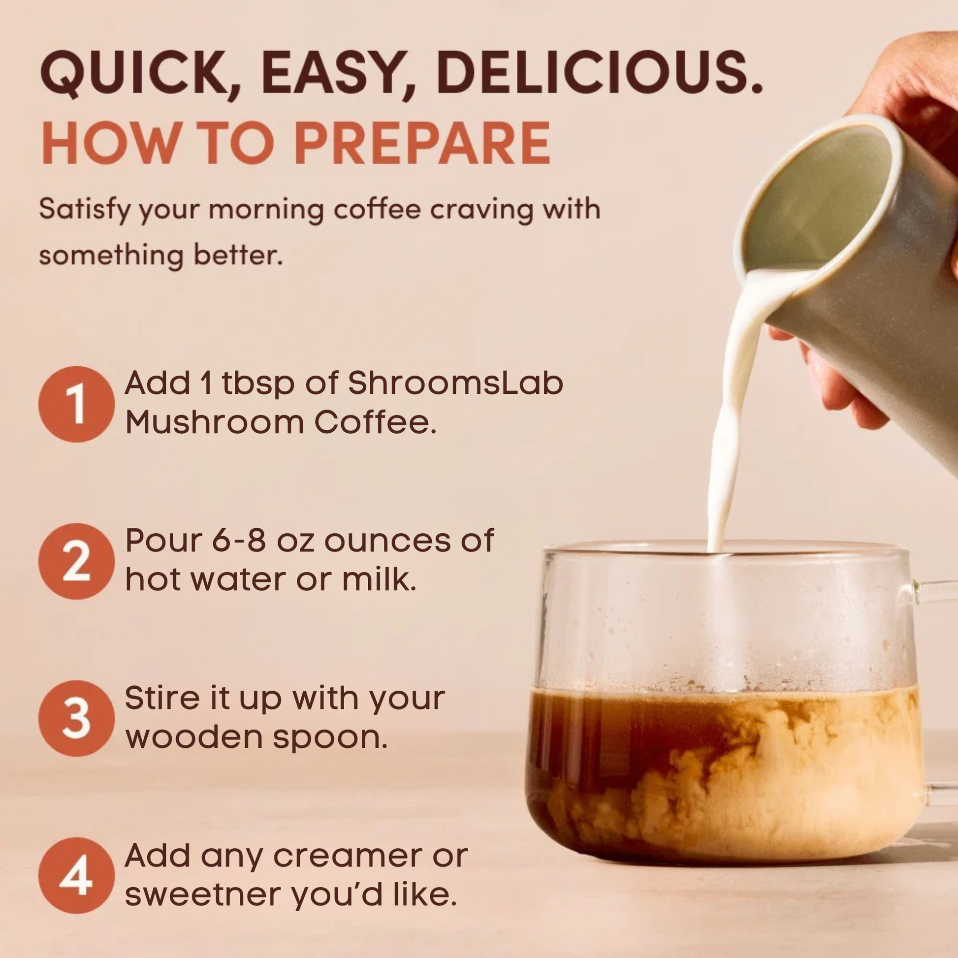 Enjoy smooth, rich coffee flavor with functional mushrooms. No weird aftertaste, only premium Arabica experience.